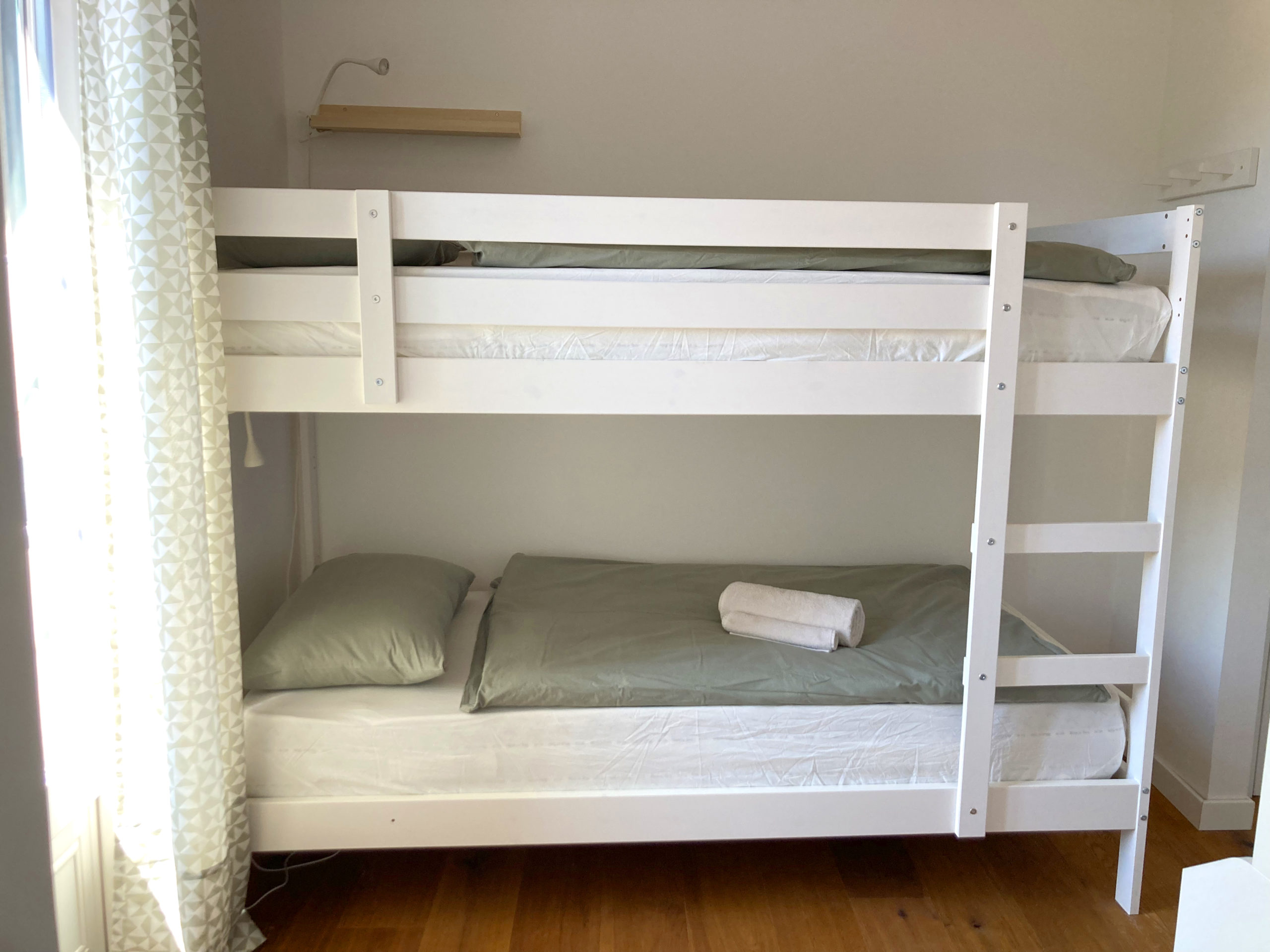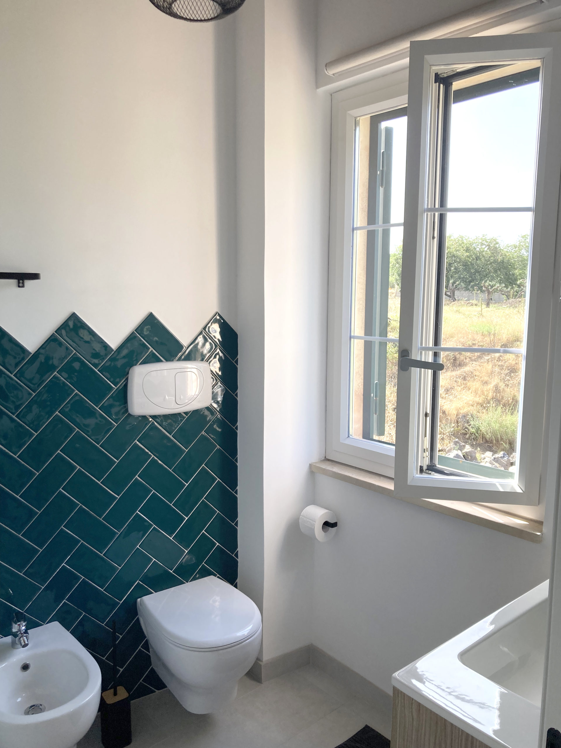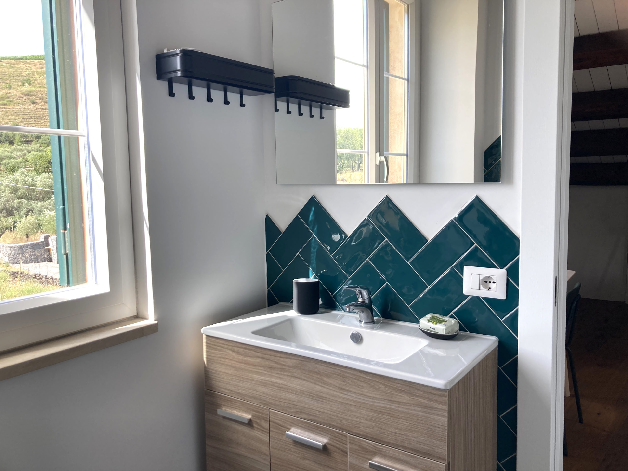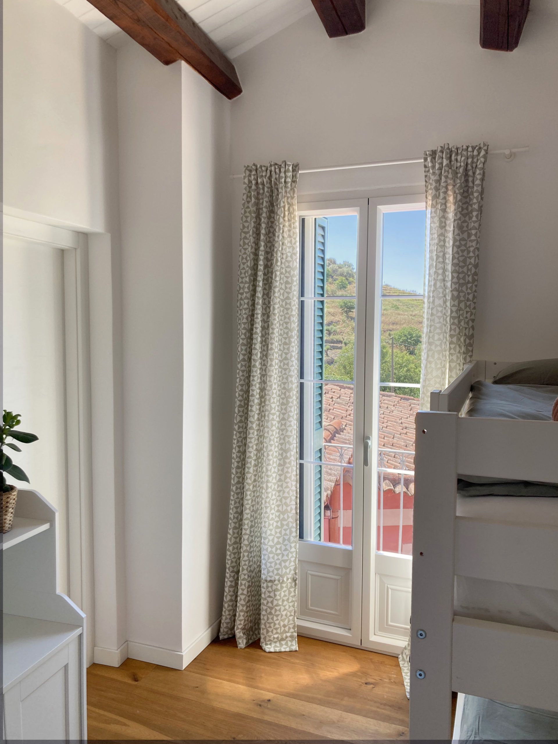 La suite se compose d’une grande chambre double, d’une petite chambre équipée de deux lits superposés ainsi que d’une salle de bains intégrée. Les trois pièces disposent de fenêtres avec vue sur les collines, sur le jardin et sur l’Etna.